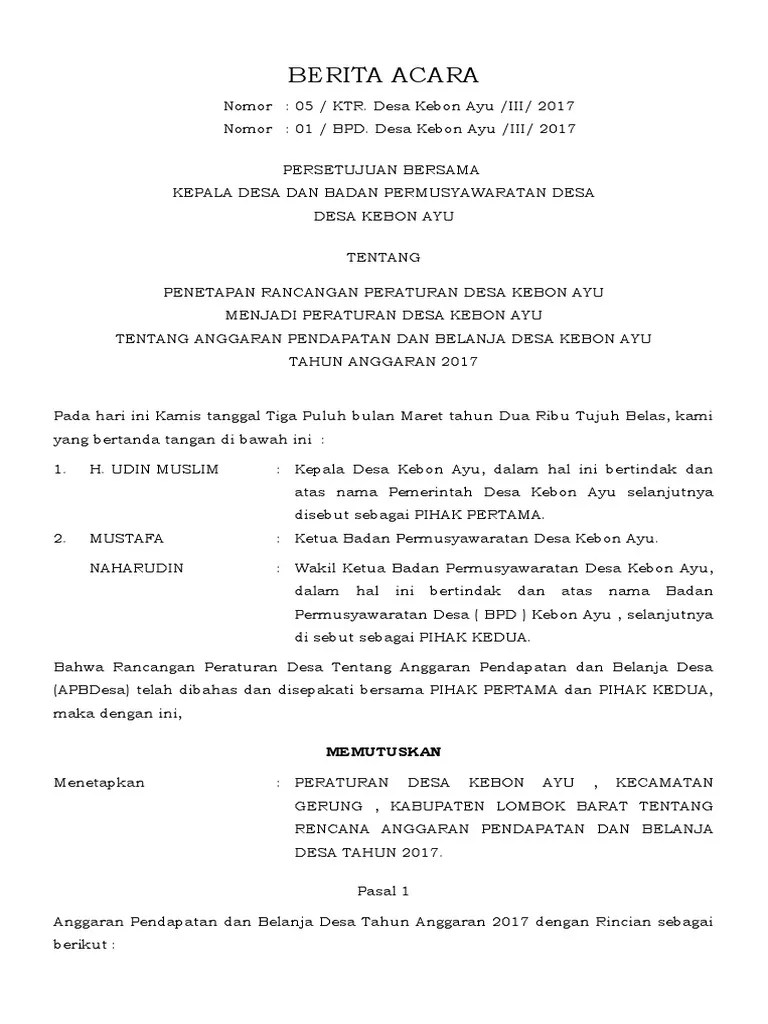 Penetapannya perlu persetujuan badan permusyawaratan desa yang. Tersebut dalam berita acara rapat bpd yang merupakan bagian tak terpisahkan. Anggaran pendapatan dan belanja desa yang selanjutnya disebut apbdes adalah rencana. Tahun 2019 tentang anggaran pendapatan dan belanja desa (apbdes) kebaman. Sk kepala desa cigentur nomor : Apakah dapat ditingkat menjadi pendidikan tinggi? Persetujuan terhadap anggaran pendapatan dan belanja. Petikan contoh sk persetujuan rancangan perdes pengelolaan aset desa. Nota persetujuan bpd tentang rencana kerja pembangunan desa (rkpdes) tahun 2018 di desa cigentur. Bahwa sepengetahuan saksi tidak pernah dilakukan rapat oleh bpd terkaitanggaran dan belanja desa (apbdes) serta peraturan desa ( perdes ), dimanaterkait hal . Contoh petikan sk bpd, sk bpd tentang aset desa. Setelah mendapat persetujuan dari rapat bpd bahwa dari usulan pembuatan peraturan desa. Pengawasan dana desa oleh bpd di desa colo kecamatan dawe kabupaten.